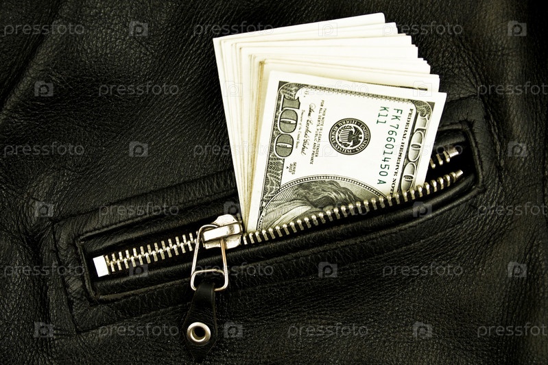 Деньги в кармане кожаного пиджака