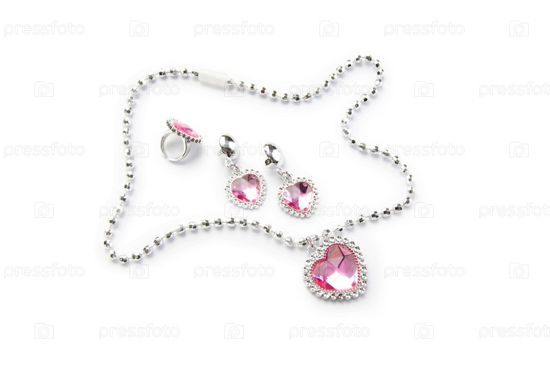 Набор украшений с розовыми сердцами на белом фоне