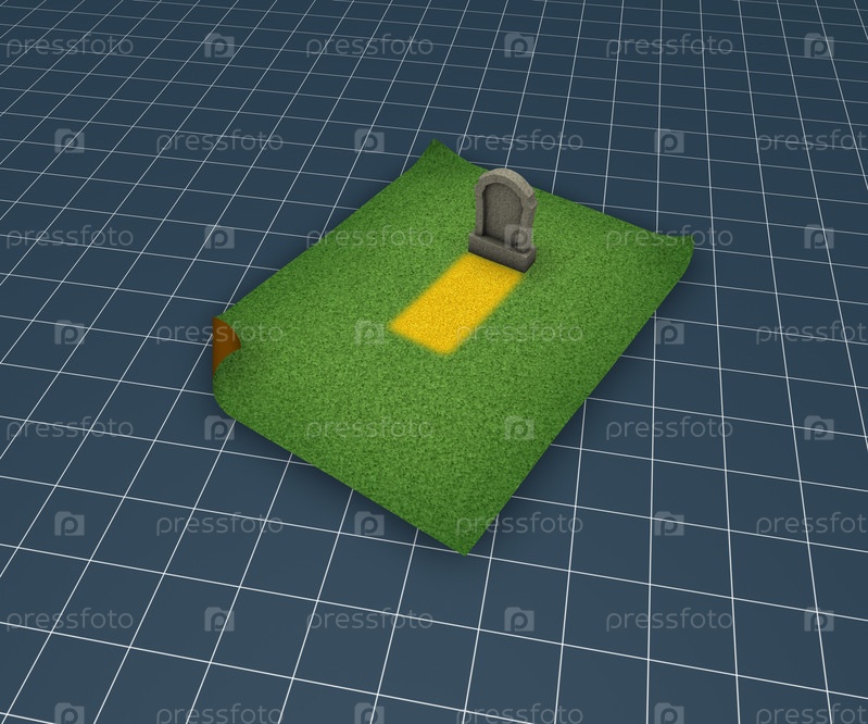 Пустой надгробный камень на траве. 3d Иллюстрация