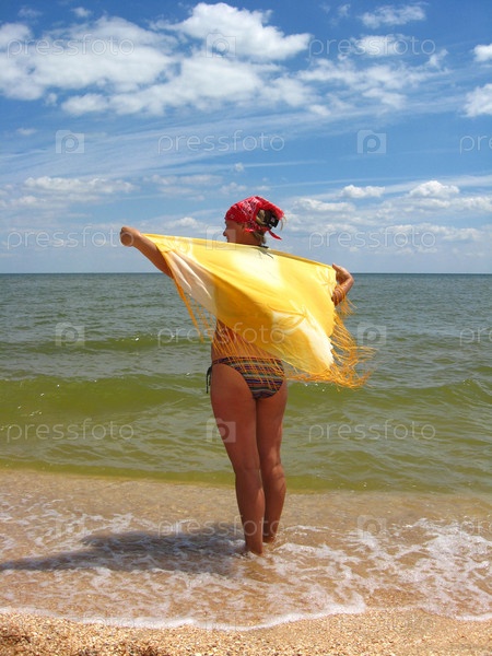 Девушка стоит на берегу моря