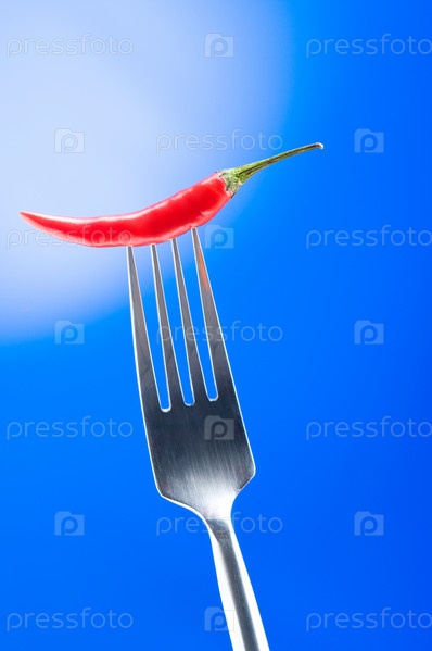 Красный перец насажен на вилку