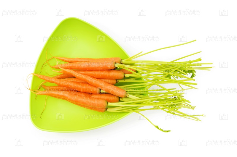 Морковь на тарелке на белом фоне