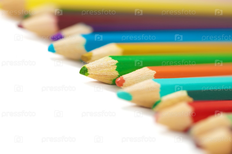 Набор цветных карандашей на белом фоне