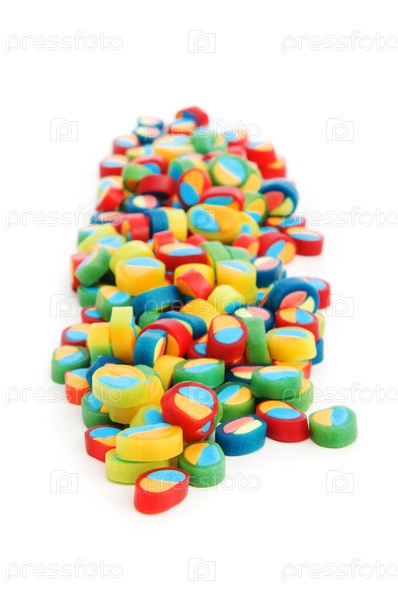 Разноцветные конфеты на белом фоне