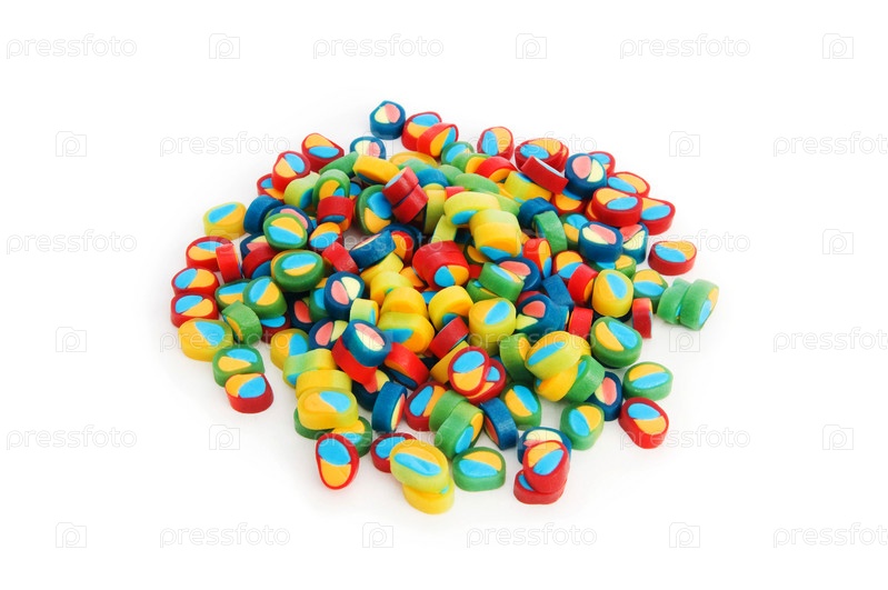 Разноцветные конфеты на белом фоне