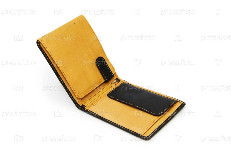 Кожаный кошелек на белом фоне