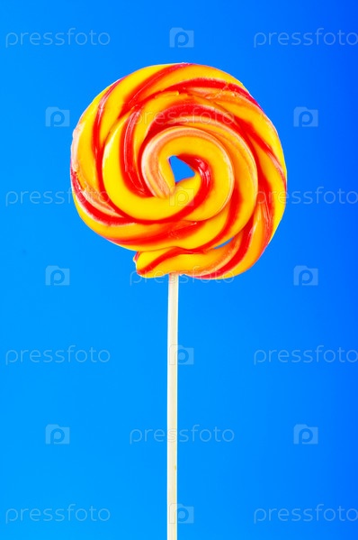 Разноцветный леденец на голубом фоне
