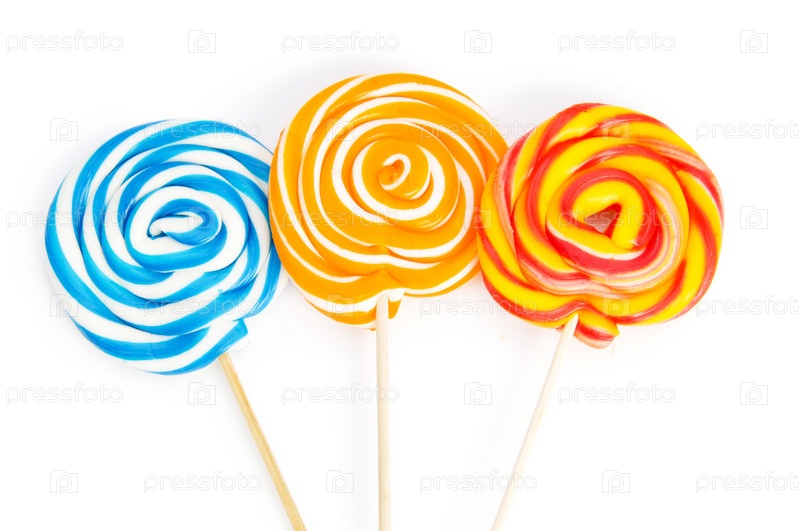 На белом фоне три разноцветных леденца