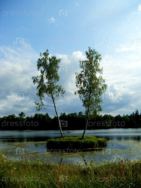 Две березы посреди озера