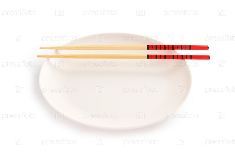 Пустая тарелка и палочки для еды