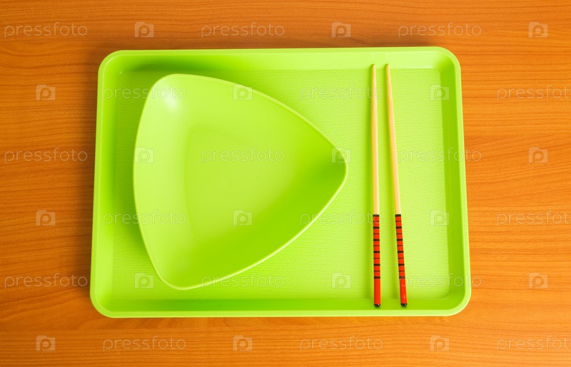Пустая тарелка и палочки для еды на столе