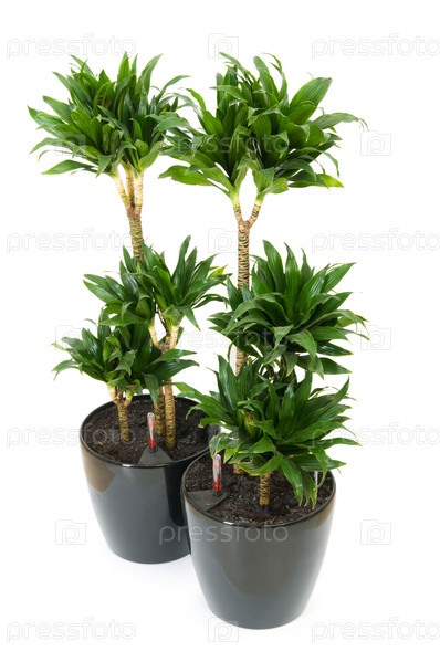 Растение Драцена в цветочном горшке на белом фоне