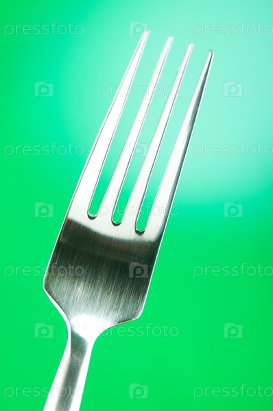 Серебряная вилка на зеленом фоне