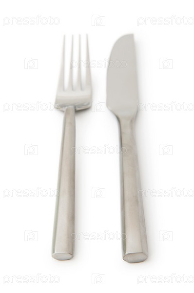 Вилка и нож на белом фоне