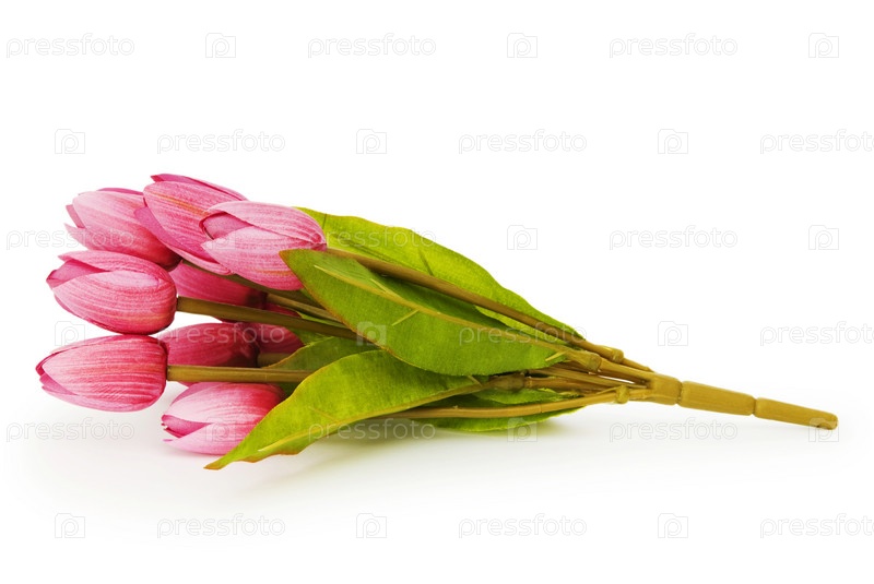 Искусственные тюльпаны на белом фоне