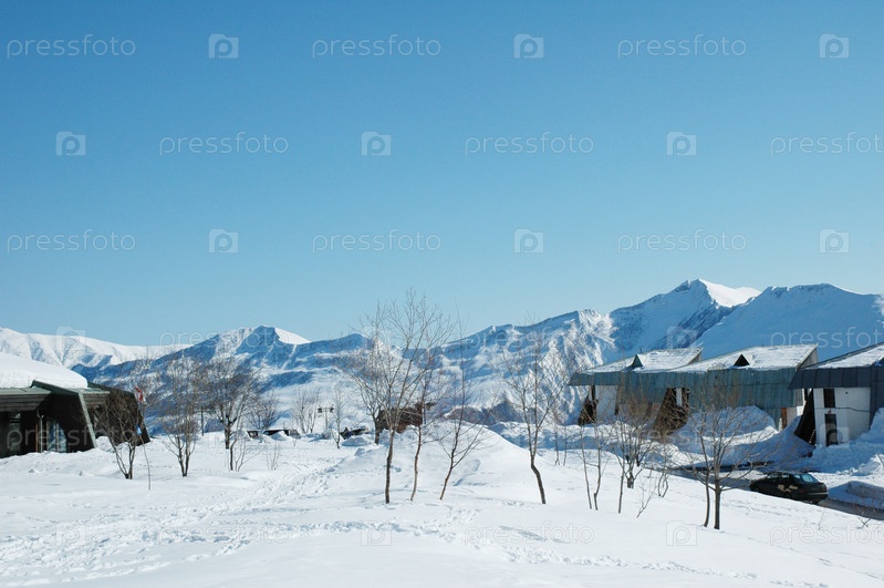 Высокие горы под снегом зимой
