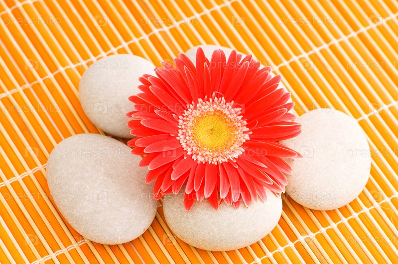 Красный цветок и куча спа-камней