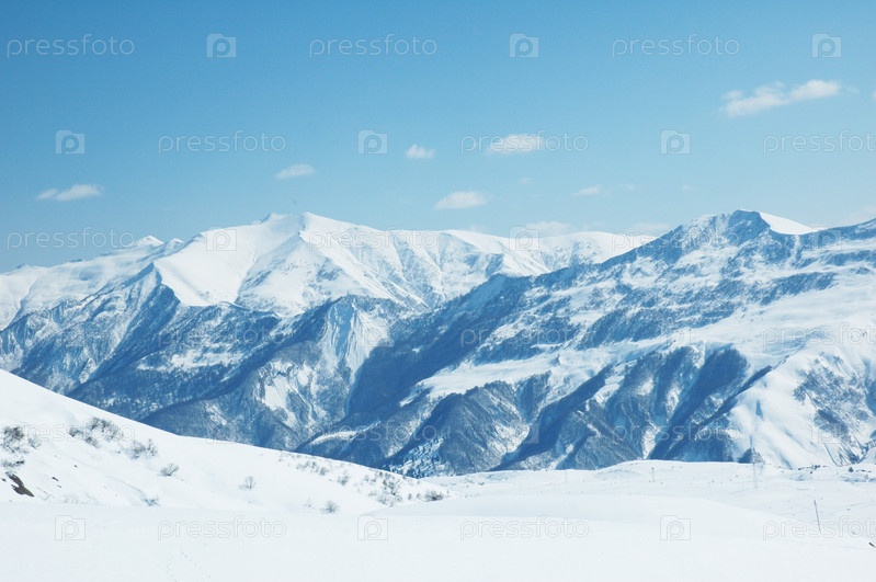 Высокие горы под снегом зимой