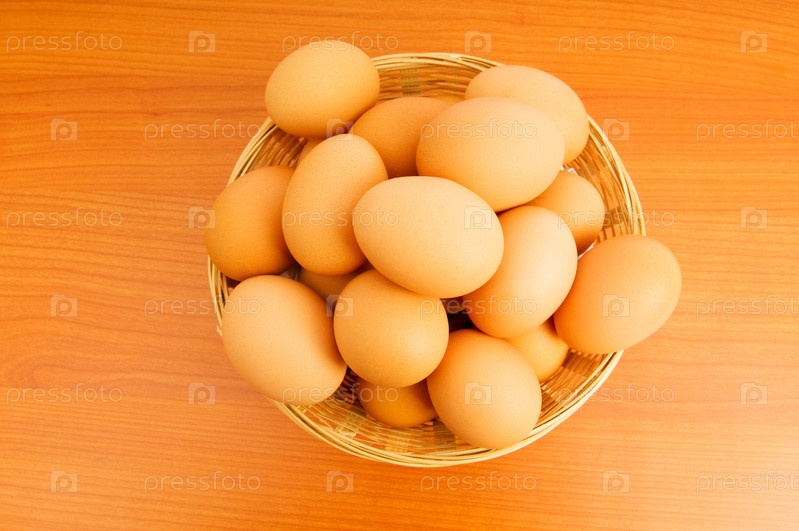 Куриные яйца в корзине крупным планом
