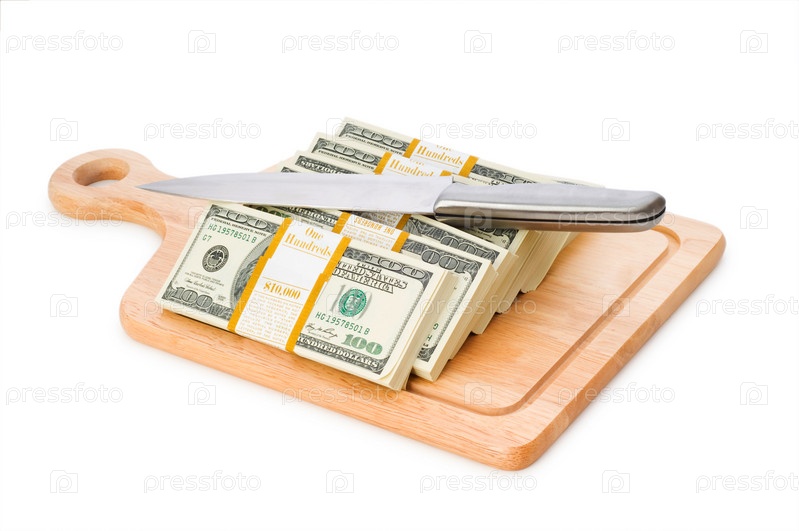 Концепция денег - резка долларов ножом