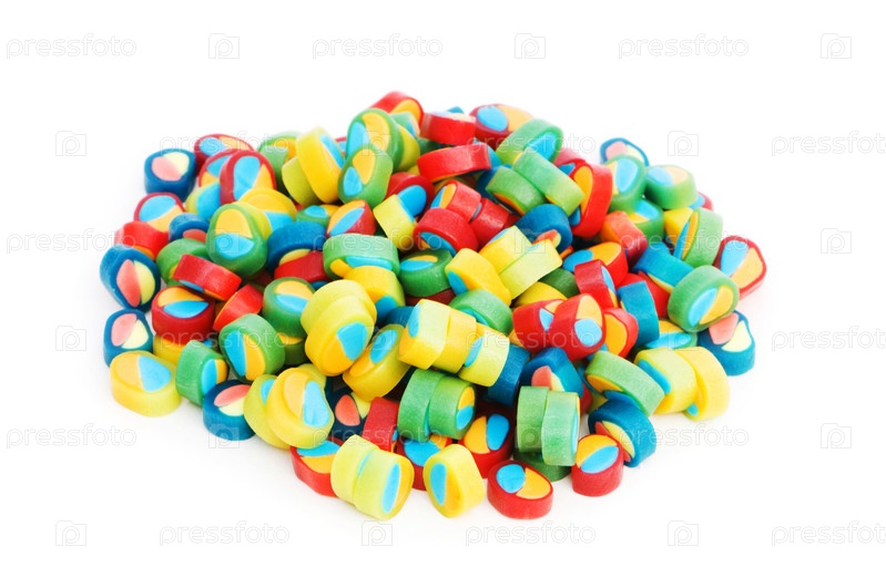 Разноцветные жевательные конфеты на белом фоне
