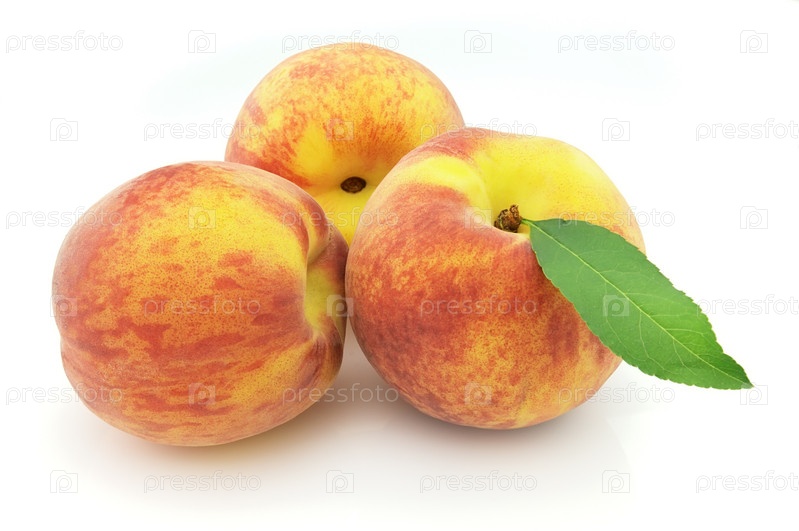 Три спелых персика на белом фоне