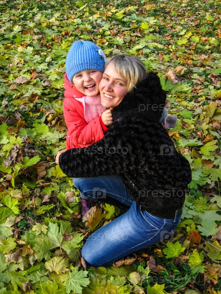 Счастливые мать и ребенок в осеннем парке