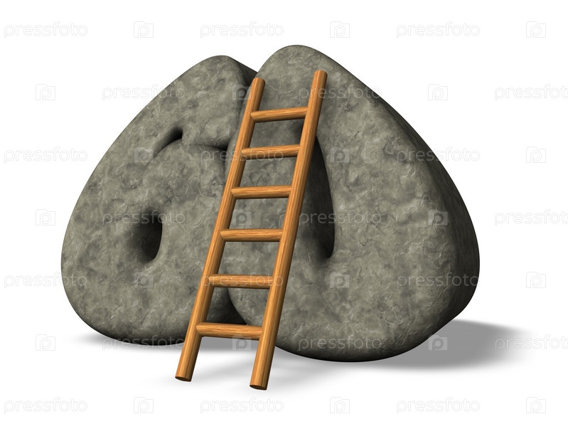 Лестница опирается на каменную цифру шестьдесят. 3d Иллюстрация