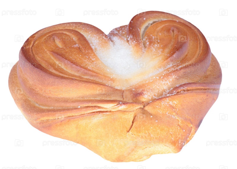 Булочка в форме сердца на белом фоне