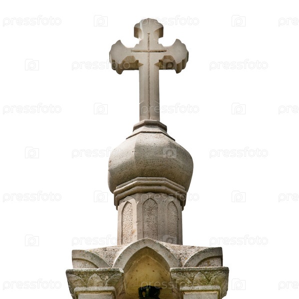 Каменный крест, изолированный на белом фоне