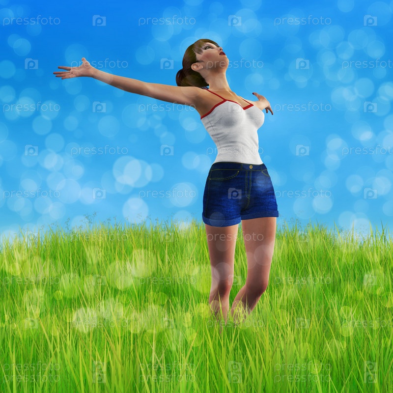 Женщина прыгает на траве