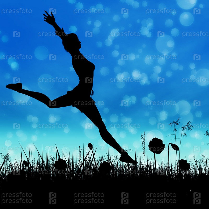 Женщина прыгает на траве