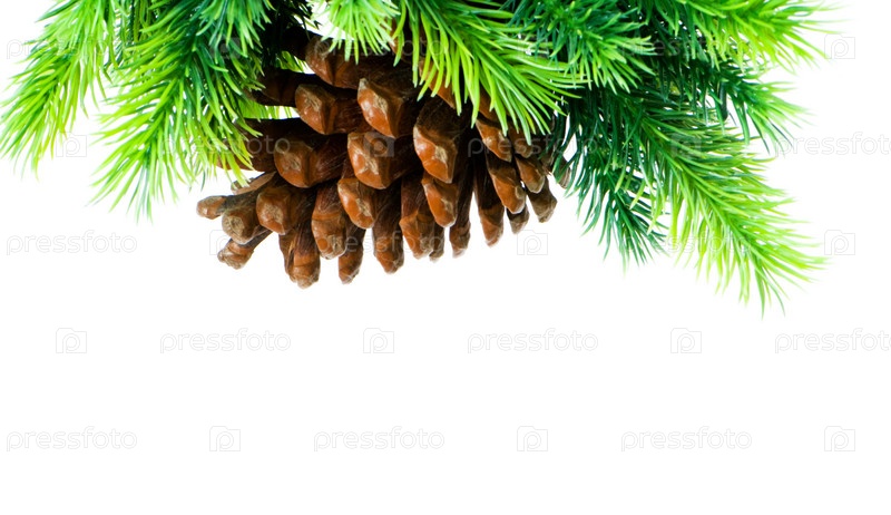 Ветка с шишкой на белом фоне