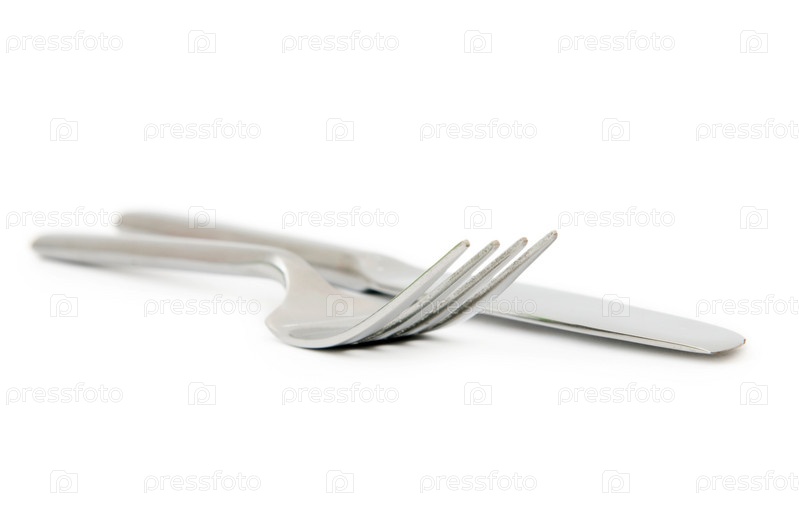 Вилка и нож на белом фоне