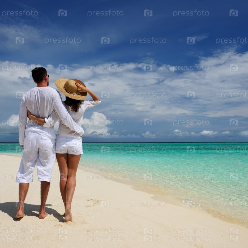 Пара на пляже на Мальдивах