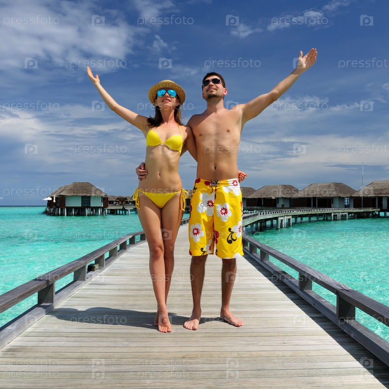 Пара на пляжном пирсе на Мальдивах