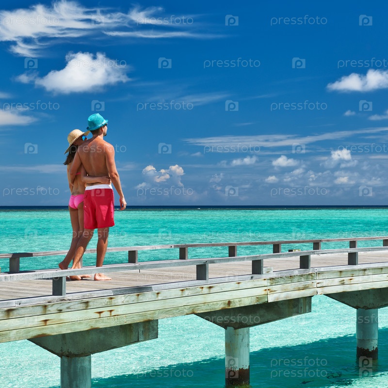 Пара на пляжном пирсе на Мальдивах