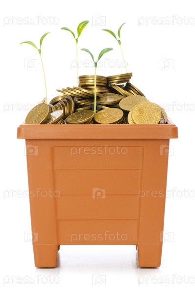 Зеленый рассадник, растущий из кучи монет