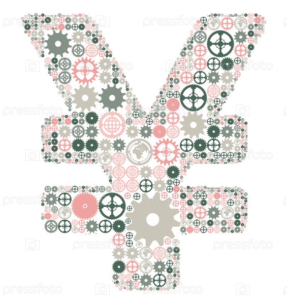 Знак японской йены из цветных механизмов