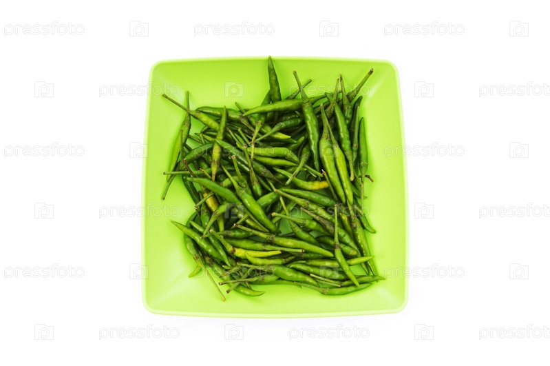 Зеленые перчики чили на тарелке