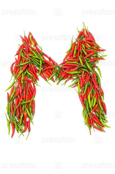Буква "М" из красных и зеленых перцев чили