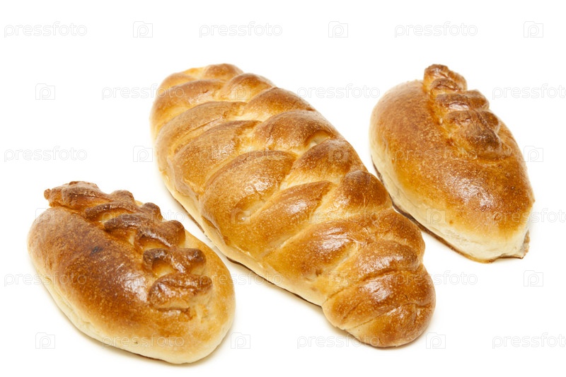 Три запеченных булочек на белом фоне