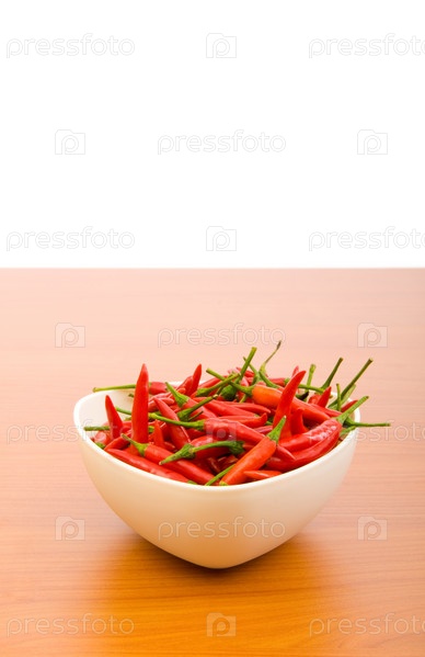 Жгучие красные перцы в тарелке