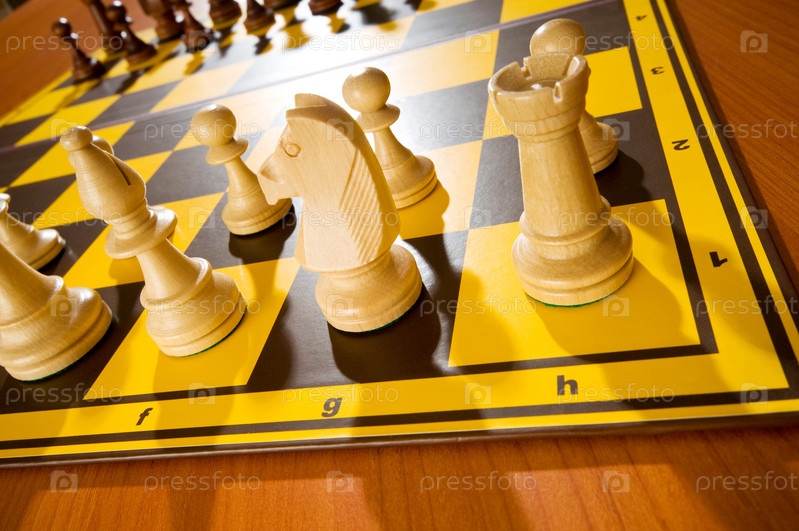 Шахматы крупным планом на деревянном столе