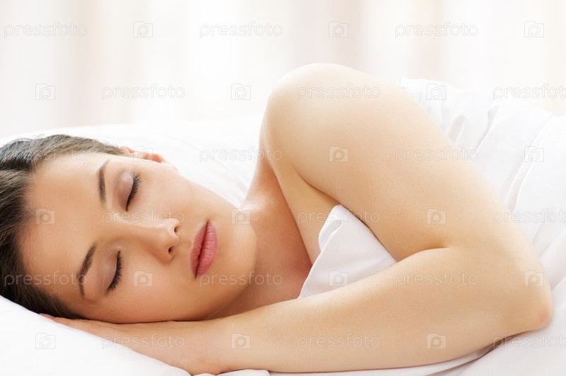 Молодая симпатичная девушка спит в постели