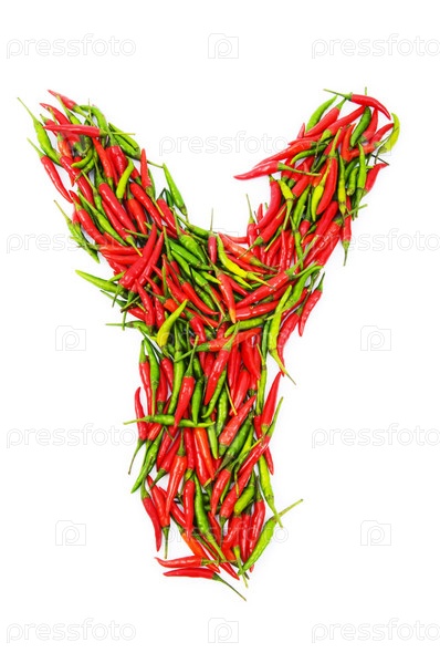 Буква 'Y' из красного и зеленого перца чили на белом фоне