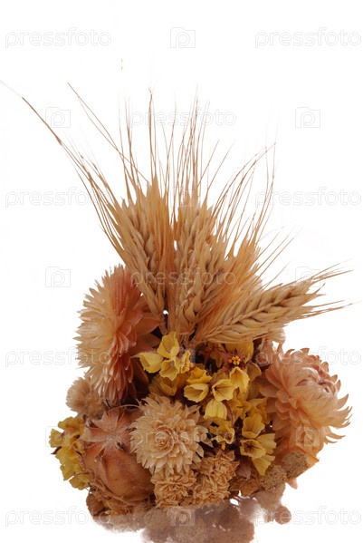 Букет из засушенных растений на белом фоне