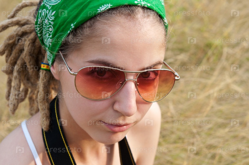 Девочка-подросток в зеленой бандане и солнечных очках