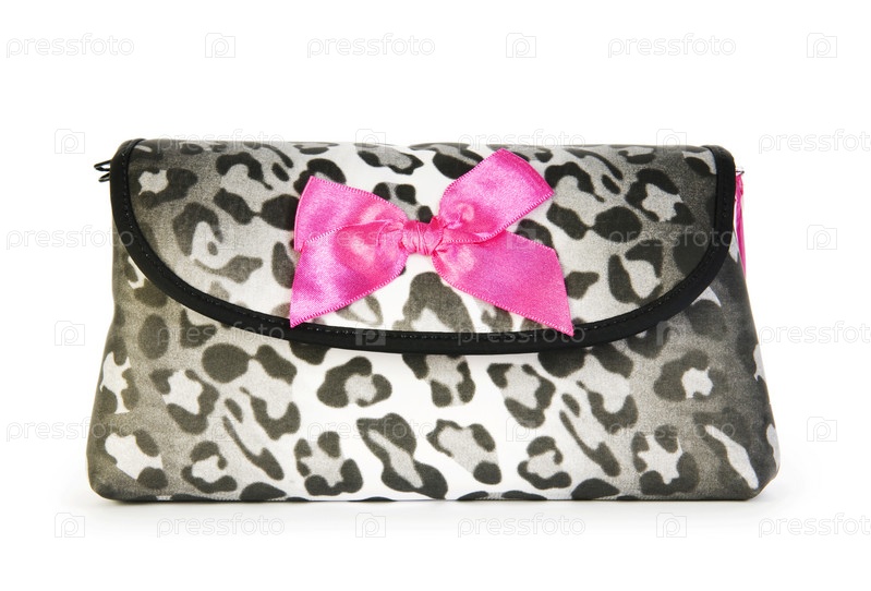Черно-белая женская сумочка на белом фоне