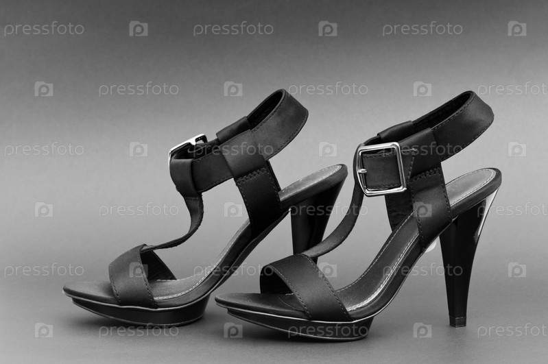 Женские черные босоножки на сером фоне
